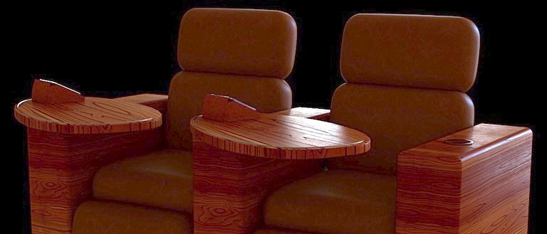 As you arrive, you’ll notice your full-sized recliner with premium vegan leather, laminated wood, polished aluminum, and dimmable LED accents.  A personalized “reserved” placard identifies your seat and announces your arrival. As you are seated your waiter perfectly positions a retractable serving tray and fills it with your requested libations, snacks and hors d’oeuvres.  A phone rest with a built-in magnetic charger is conveniently included as you’ll use an app on your phone to order additional service. Soon the night’s entertainment begins, and you adjust the built-in bass-shaker transducers to a tactile intensity that feels just right.  And to complete your personalized comfort, you customize your space with user-controlled motorized reclining, headrest, footrest, and lumbar controls totally immersing yourself in cinematic magic.